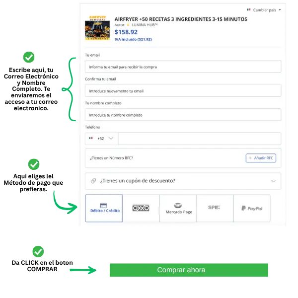 Puedes realizar tu pago dando clic en el botón VERDE, donde dice «CLICK PARA OBTENER LA OFERTA» y puedes pagar con tarjeta de crédito, débito, PayPal, Oxxo, Pagos en efectivo, Efecty y transferencia bancaria. LAS INSTRUCCIONES MAS VISUALES LAS PODRAS VER MAS ADELANTE CON IMAGENES.